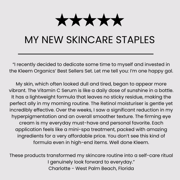 Kleem Organics' Vitamin C Serum, Eye Cream, and Retinol Cream are best-sellers due to their high-quality, scientifically formulated ingredients that deliver visible results, such as brighter skin, reduced wrinkles, and improved texture. The affordability and effectiveness of this bundle have garnered countless positive reviews, making it a trusted choice for achieving radiant, youthful skin.